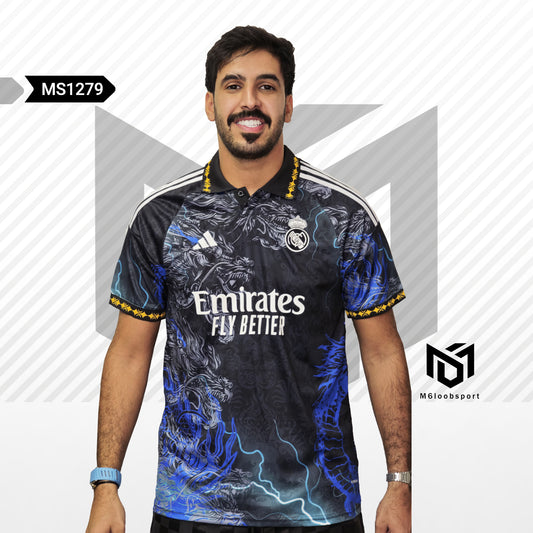 Show your passion for Real Madrid with the 25/26 Dragon Blue and Black Fans Jersey....